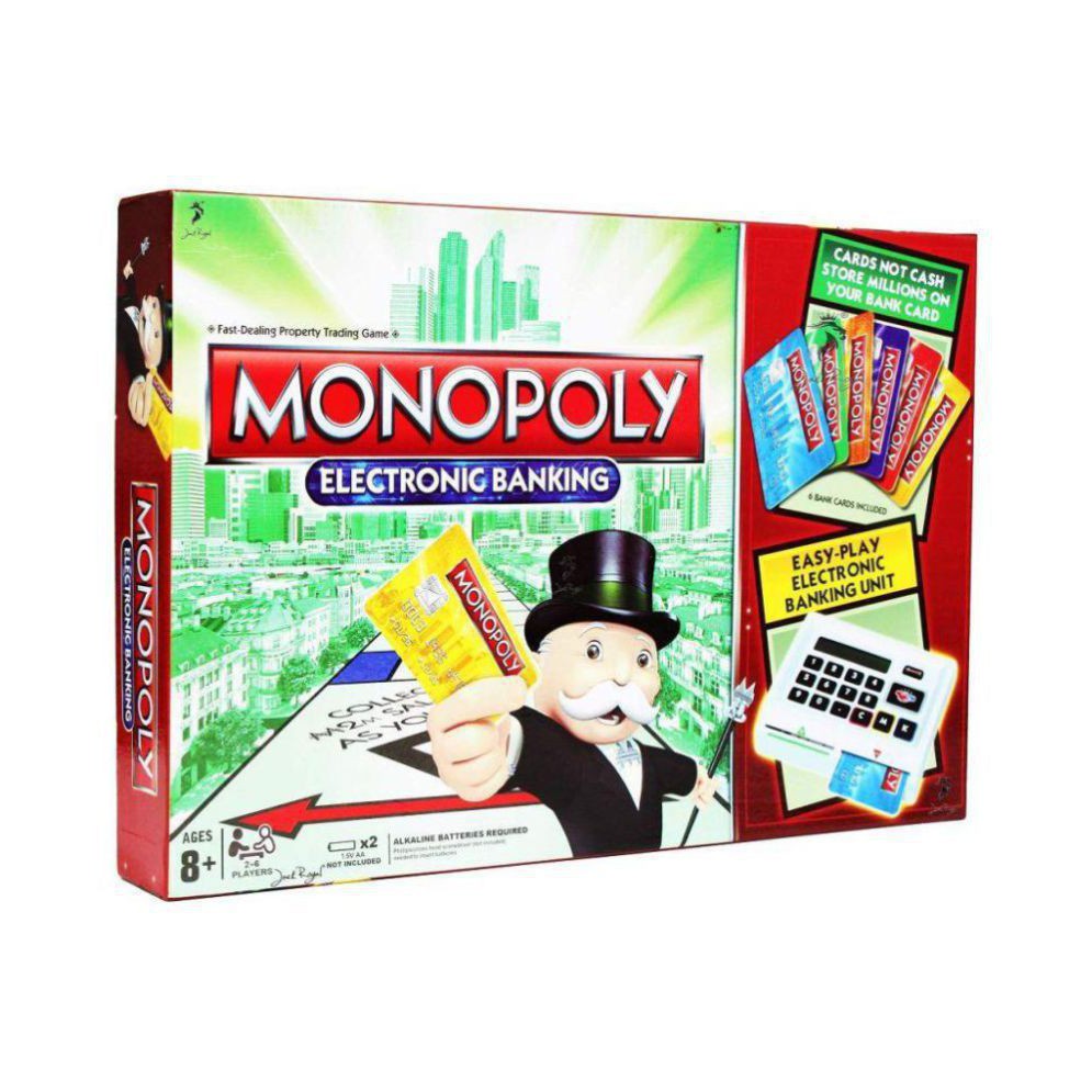 2011 monopoly electronic banking 6 replacement atm debit credit cards. Monopoly super electronic banking is a version of the classic game that the players use their electronic barcoded bank cards to do any monetary transactions without paper money. Game board, electronic banker unit, 6 tokens, 28 title deed cards, 16 chance cards, 16 community chest cards, 6 monopoly bank cards, 32 houses, 12 hotels, and 2 dice. Electronic banking edition is a fast and fun variation on the classic board game, which utilizes an electronic banker's unit and player cards functioning much like an atm. Can you play cards other than money into your bank?